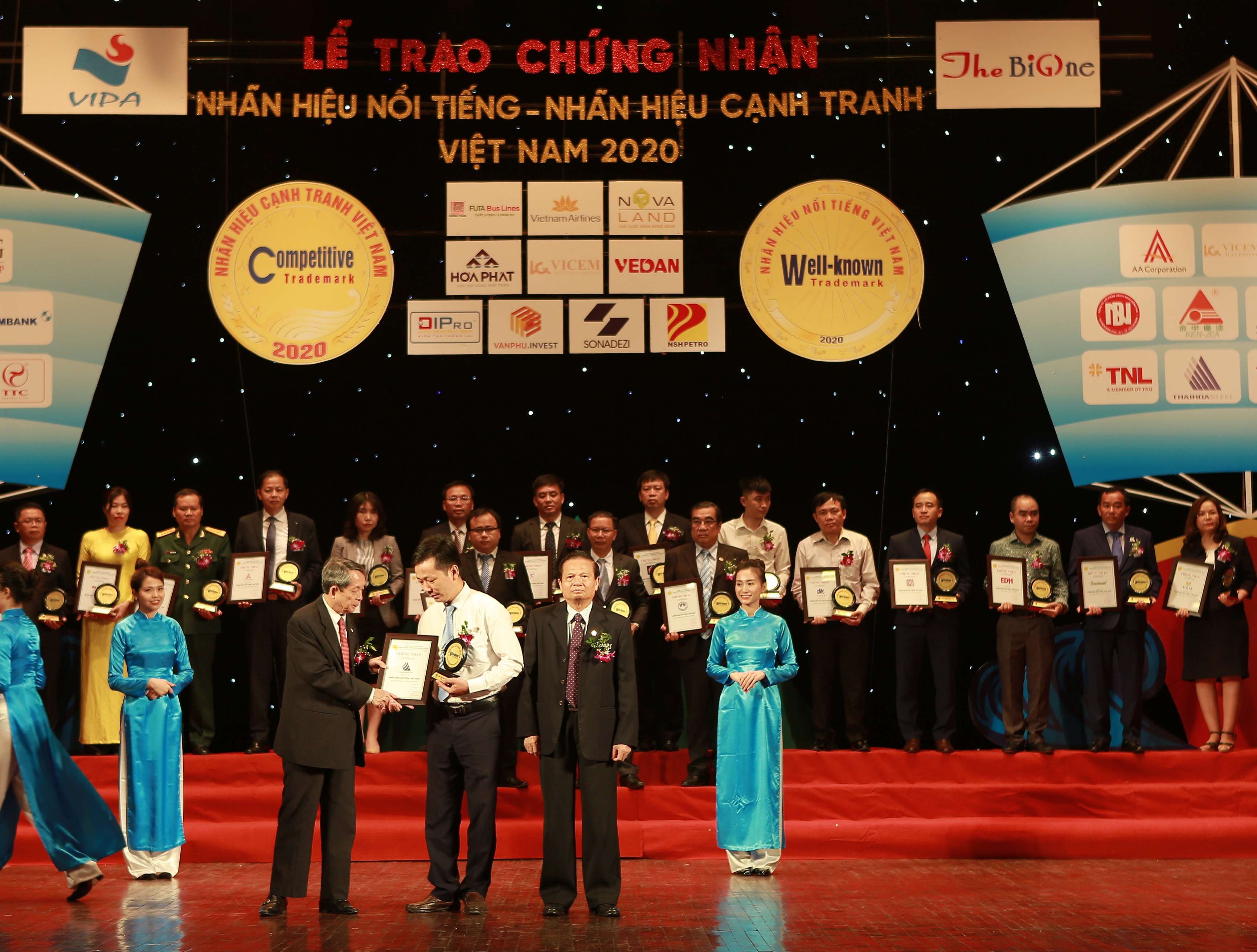 Ảnh: Đại diện Công ty nhận Giải Nhãn hiệu nổi tiếng - Nhãn hiệu cạnh tranh năm 2020 do Hội Sở hữu trí tuệ Việt Nam, Cục Sở hữu trí tuệ tổ chức